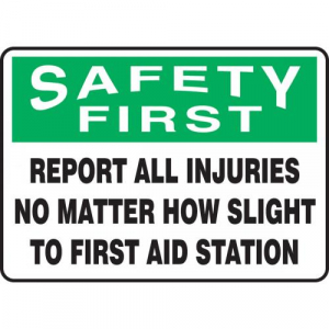 Report All Injuries No Matter How Slight To First Aid Station 10" x 14" - MFSD908XL - Jendco Safety Supply
