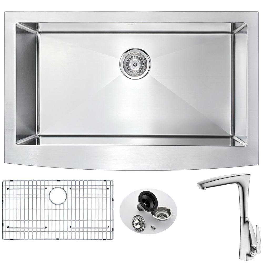 33" Stainless Steel Farmhouse Kitchen Sink with Single-Handle Pull-Down Sprayer Faucet - Brushed Satin - Elysian Series K33201A-031O - ANZZI