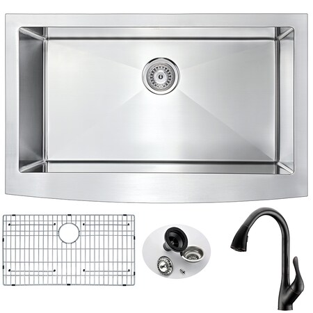 Anzzi, K33201A-031O, , Elysian Farmhouse Stainless Steel 32 In 0 Hole Kitchen Sink And Faucet Set With Accent Faucet In Oil Rubbed Bronze