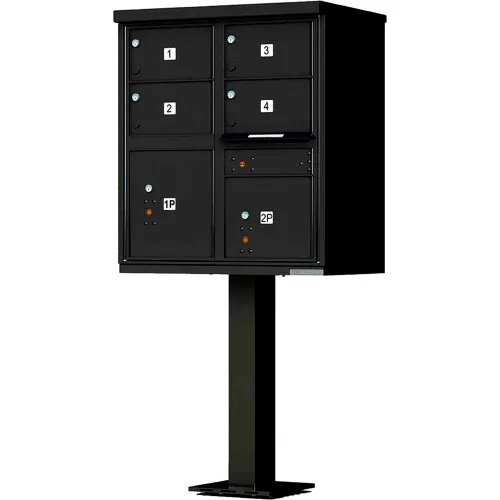 Vital Cluster Box Unit, 4 Mailboxes & 2 Parcel Lockers, Black