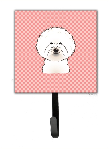 Carolines Treasures BB1217SH4 Checkerboard Pink Bichon Frise Leash Or Key Holder, 4.25 W x 7 H In.
