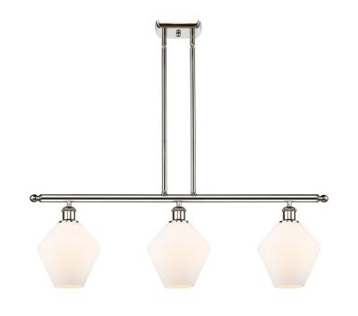 This 3 light Island Light from the Ballston Cindyrella collection by Innovations Lighting will enhance your home with a perfect mix of form and function. The features include a Polished Nickel finish applied by experts. Product Features Include: Brand: Innovations Lighting, Collection: Ballston Cindyrella, SKU: 516-3I-PN-G651-8-LED, UPC: 729625127106, Category: Island Light, Finish: Polished Nickel, Glass: Cased Matte White Cindyrella 8, Material: Steel/Cast Brass/Glass, Designer: Bruno Marashlian, Width: 36.00 in., Height: 10.50 in., Max Height: 43.50 in., Extension/Depth: 8.00 in., Backplate/Canopy Width: 4.50 in., Backplate/Canopy Length: 6.00 in., Backplate/Canopy Thickness: 0.75 in., Weight: 11.25 lb., Included Chain/Rods/Cord: 2-6 and 4-12 inch stems, Included Lead Wire: 120.00, Warranty: 2 Year Finish, Lifetime Electrical, Bulbs Included: Yes, Bulb Category: LED, Primary Bulb(s): 3 x 6.00 watts Medium Base ST64, Color Temperature: 2700K, Color Rendering Index: 82.0000, Total Lumens: 600, Voltage: 120, Safety Rating: UL/ETL Damp Location, Title 20 Approved
