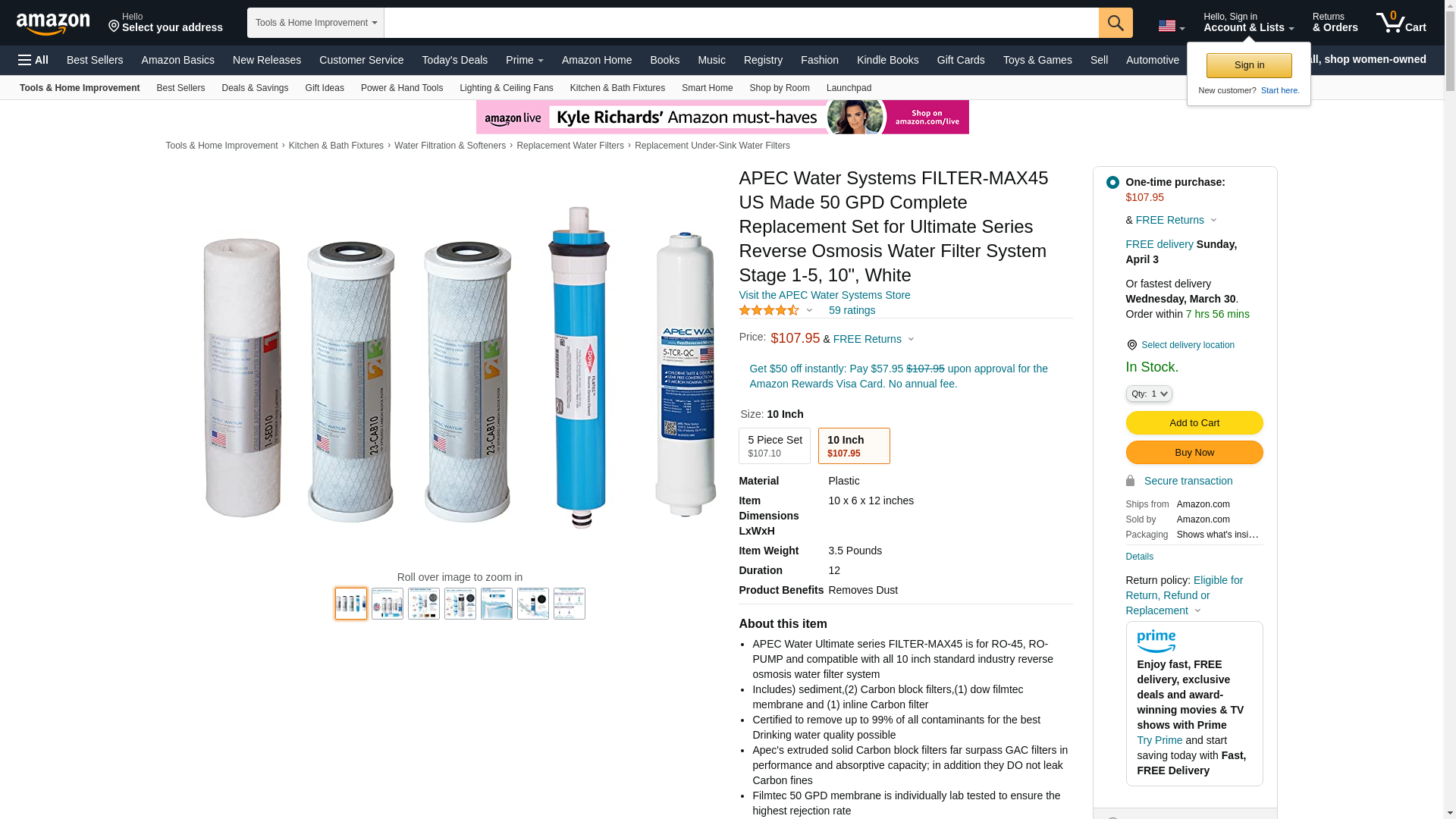 | Feature | APEC water ultimate series FILTER-MAX45 is for RO-45, RO-PUMP and compatible with all 10 inch industry standard size reverse osmosis water filtration system. |