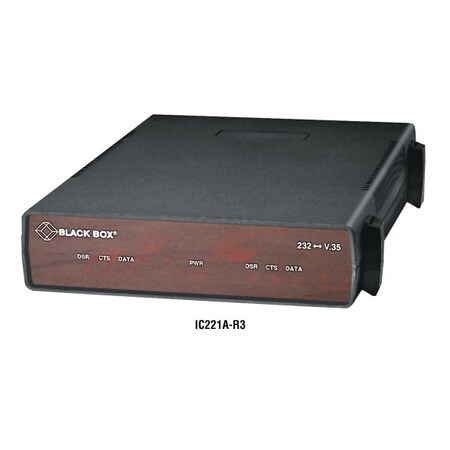 RS-232, RS-422, and V.24 interfaces are incompatible with V.35, aren't they? Not when you use a Black Box V.35 Interface Converter. aren't they? Not when you use a Black Box V.35 Interface Converter. Choose from two standalone, two rackmount card, and four micro models. These converters are bidirectional data converters, DCE or DTE switch-selectable on each end, and transparent to speed and protocol. Configure each side of the converter as a DCE or DTE. The side that's configured as a DCE connects to a DTE. And the side that's configured as a DTE connects to a DCE. With the converters, you can only connect a DCE to a DTE, and vice versa. You cannot connect two DCEs or two DTEs together using<br/><br/><strong>Brand Name</strong>: Black Box<br/><strong>DVI</strong>: No<br/><strong>Form Factor</strong>: Desktop<br/><strong>Network (RJ-45)</strong>: No<br/><strong>Product Type</strong>: Transceiver/Media Converter<br/><strong>Total Number of Ports</strong>: 2<br/><strong>USB</strong>: No<br/><br/><br/><b>General Information</b><br/>Brand Name: Black Box<br/>Manufacturer Part Number: IC221A-R3<br/>Manufacturer: Black Box Corporation<br/>Marketing Information: RS-232, RS-422, and V.24 interfaces are incompatible with V.35, aren't they? Not when you use a Black Box V.35 Interface Converter. aren't they? Not when you use a Black Box V.35 Interface Converter. Choose from two standalone, two rackmount card, and four micro models. These converters are bidirectional data converters, DCE or DTE switch-selectable on each end, and transparent to speed and protocol. Configure each side of the converter as a DCE or DTE. The side that's configured as a DCE connects to a DTE. And the side that's configured as a DTE connects to a DCE. With the converters, you can only con