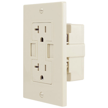 Newer Technology Newertech Power2U Ac 20A Outlet W/ 2X Usb Charging Ports, 2X Ac 110/120V - Ivory Color. - NWTPWR2U20ATRI