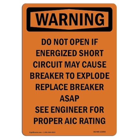 OSHA WARNING Sign, Do Not Open If Energized Short, 18in X 12in Rigid Plastic