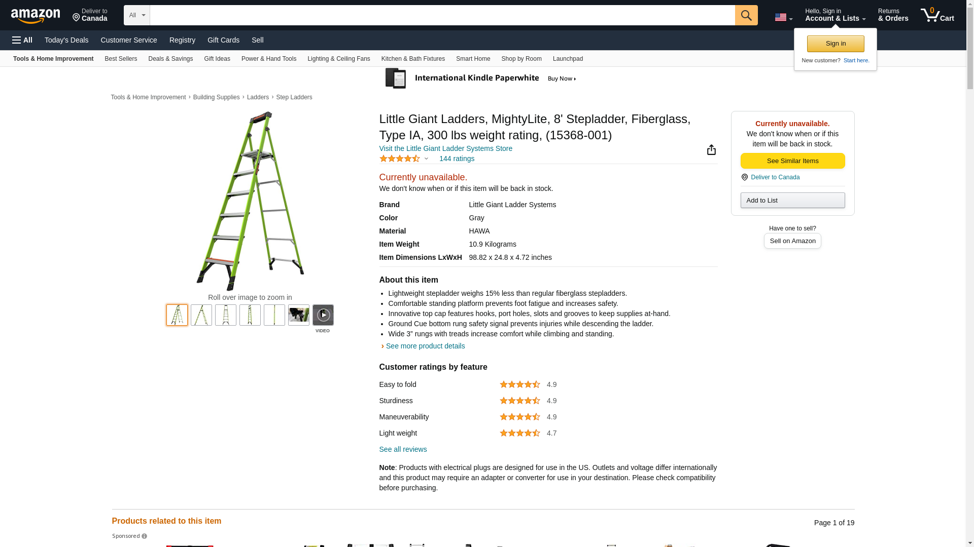 - Lightweight stepladder weighs 15% less than regular fiberglass stepladders.