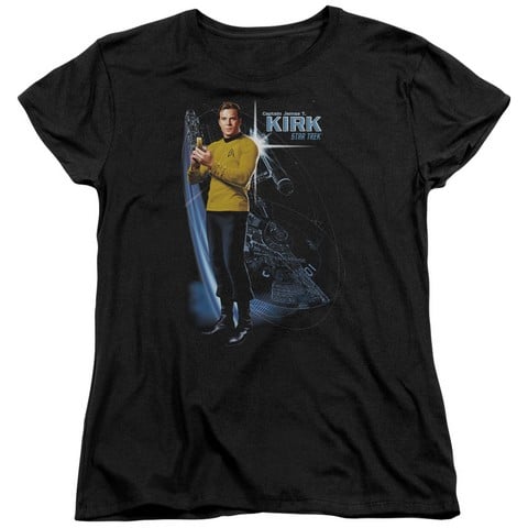 Trevco Star Trek-Galactic Kirk - Short Sleeve Womens Tee - Black, Small