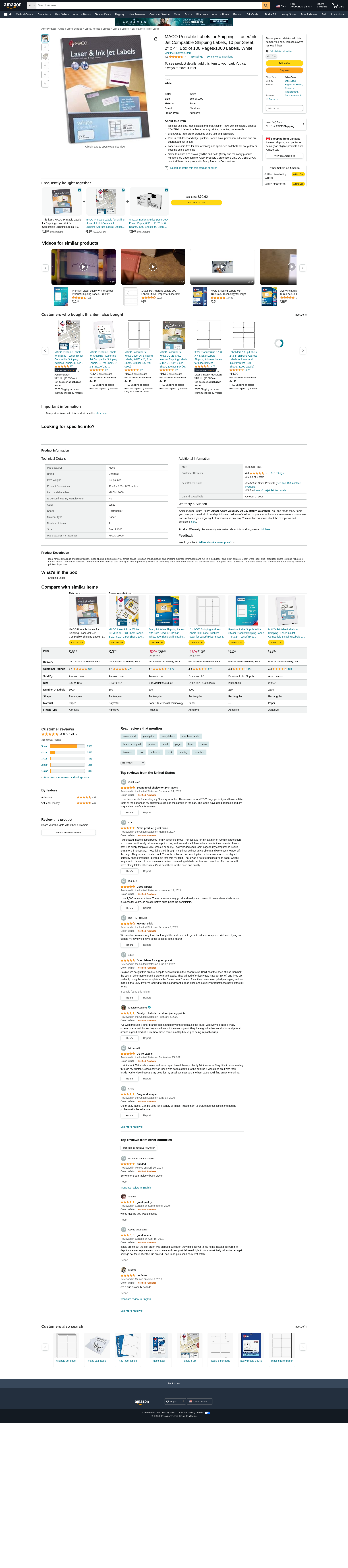 MACML1000 - MACO White Laser/Ink Jet Shipping Label, MAC ML1000