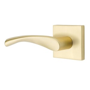 Brass Modern Hardware Collection - Privacy Triton Left Handed Door Lever With Square Rose in Satin Brass by Emtek Hardware - 5210238TRTLHUS4 | MyKnobs