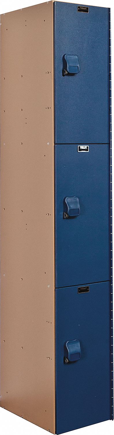 Hallowell HPL1282-3A-TB AquaMax Plastic Locker, Triple Tier, 1-Wide, 72" Height x 12" Width x 18" Depth, Taupe Body with Deep Blue Door, Assembled