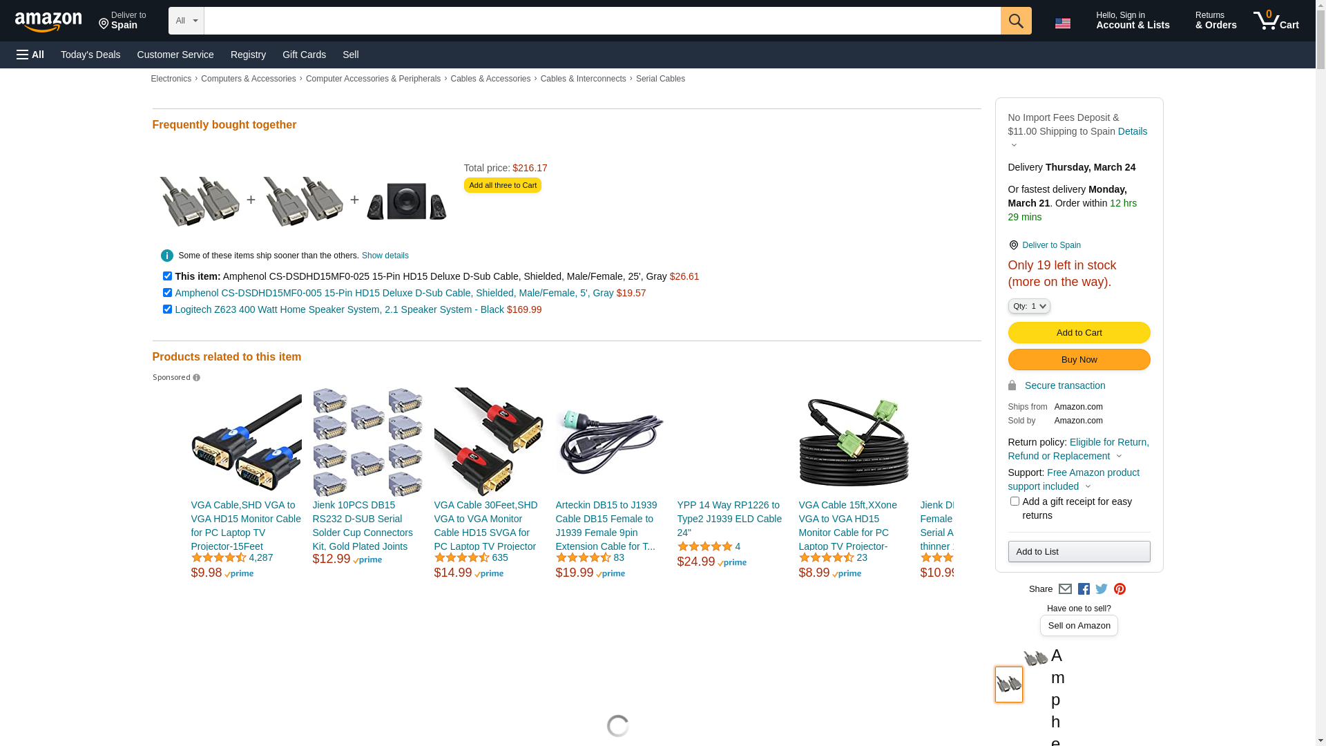 | Waldom | AMPHENOL COMMERCIAL PRODUCTS CS-DSDHD15MF0-025 | 3 | 3 | 1 | 3 @ $22.09 |