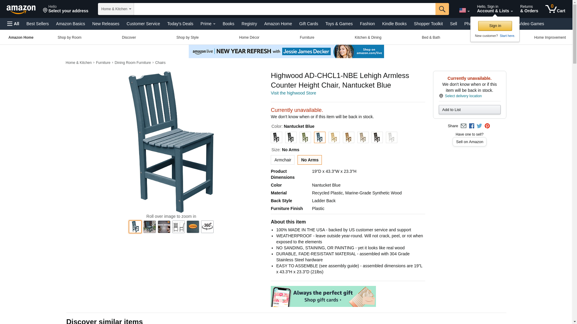Highwood AD-CHCL1-NBE Lehigh Armless Counter Height Chair, Nantucket Blue