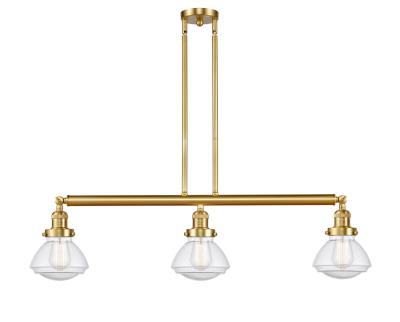 INNOVATIONS LIGHTING 213-SG-G324 FRANKLIN RESTORATION OLEAN 3 LIGHT 39 1/4 INCH SEEDY GLASS ISLAND LIGHT, SATIN GOLD,...