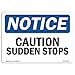 OSHA Notice Sign, Caution Sudden Stops, 14in X 10in Rigid Plastic