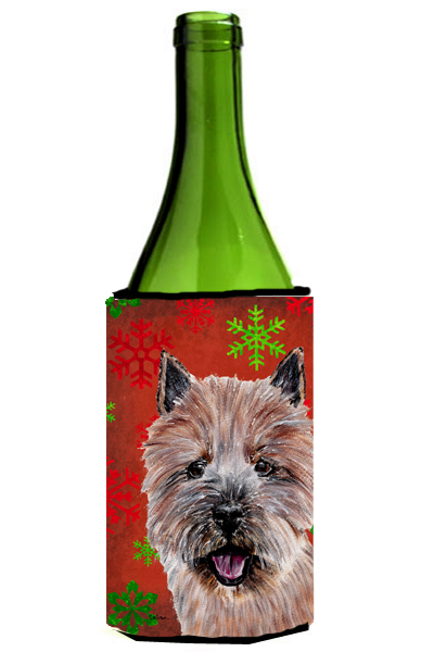 Carolines Treasures SC9758LITERK Norwich Terrier Red Snowflakes Holiday Wine bottle sleeve Hugger 24 Oz.