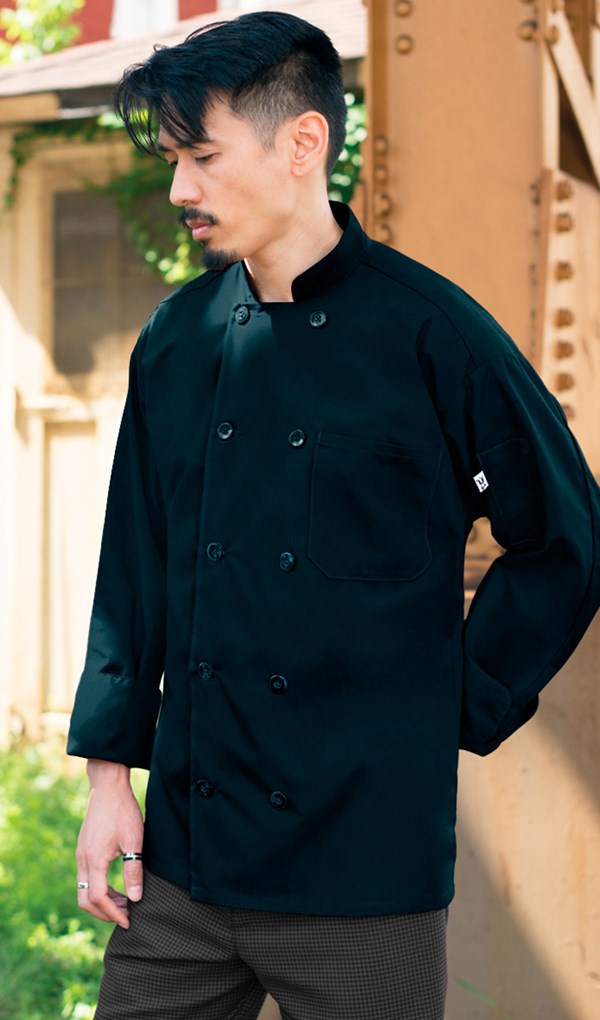 Uncommon Threads Classic 0413 Unisex Lightweight Navy Blue Customizable Long Sleeve Chef Coat with 10 Buttons - M