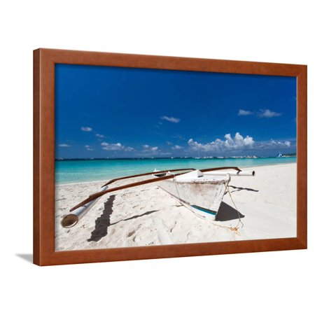 <ul> <li>Title: Wooden Boat on Tropical Beach with White Sand</li> <li>Artist: pashapixel</li> <li>Paper Type: Photographic Print</li> <li>Product Type: Framed Art Print</li> <li>Framed in SOHO Pecan</li> <li>Arrives ready-to-hang for fast, simple installation</li> <li>Framed Size: 26x18 in.</li> <li>Handcrafted in the USA</li> </ul>