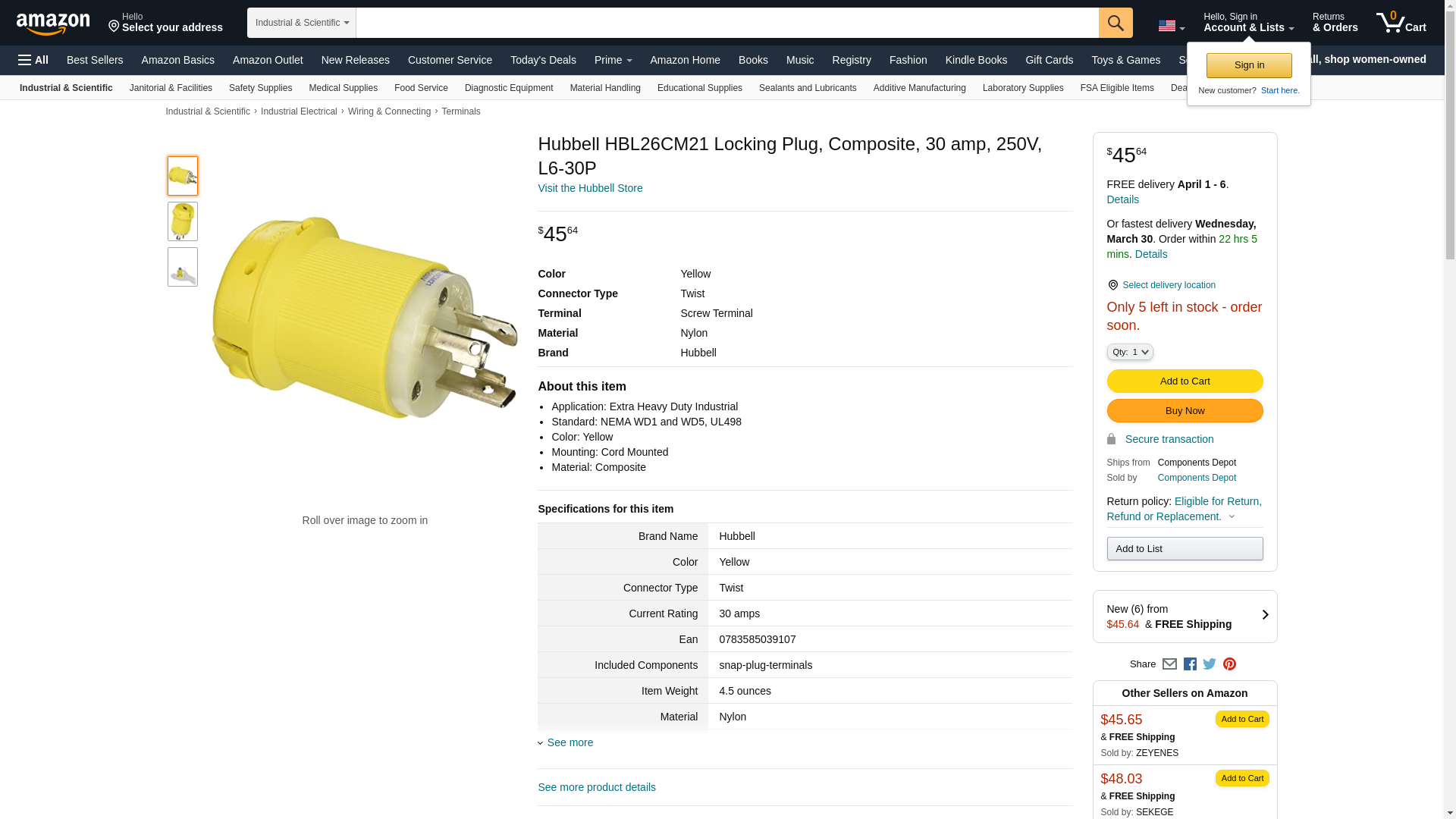![]() gordonelectricsupply.com | HBL26CM21 | 1 | -2 | 1 | 1 @ $40.68 |