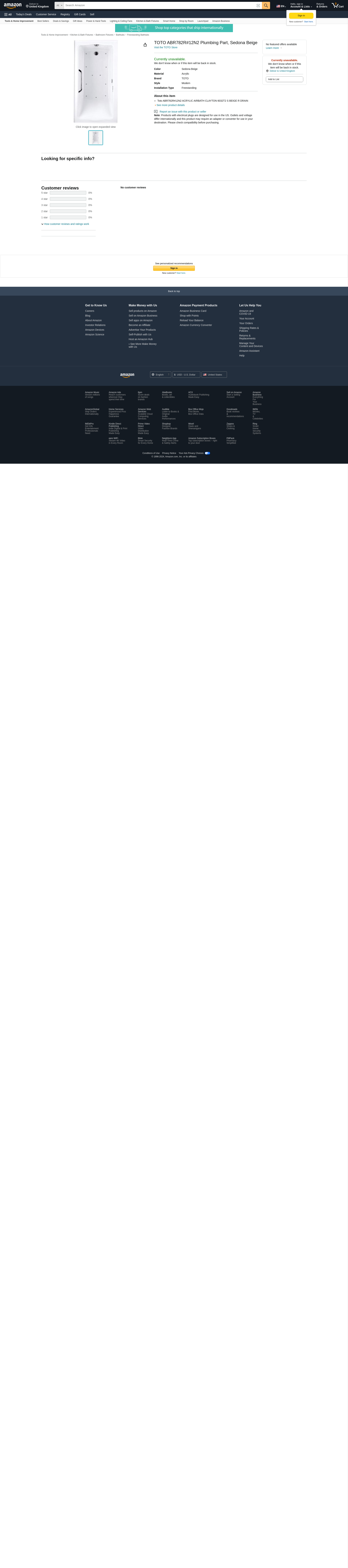 - Toto ABR782R#12N2 ACRYLIC AIRBATH CLAYTON 6032T2 S BEIGE R DRAIN