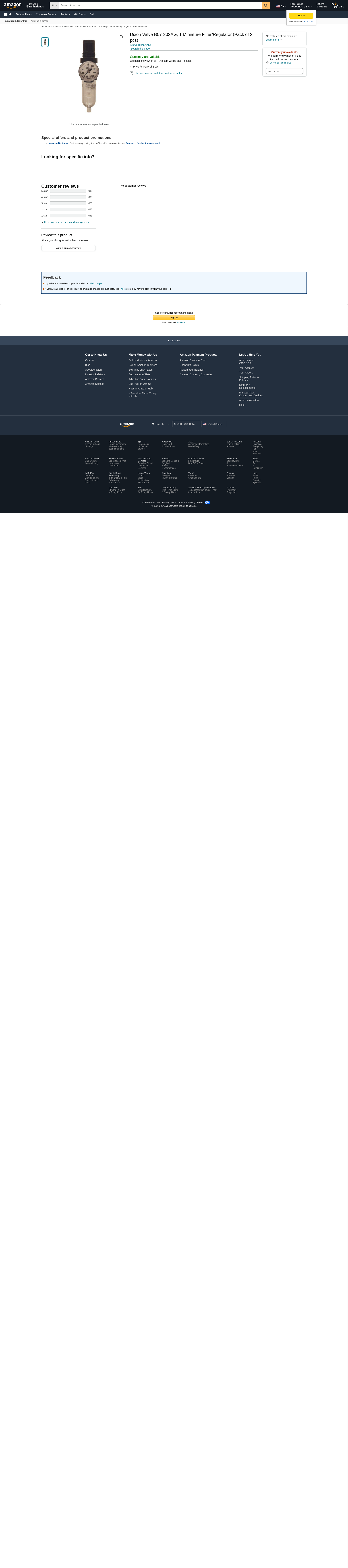 Dixon Valve B07-202AG, 1 Miniature Filter/Regulator (Pack of 2 pcs)