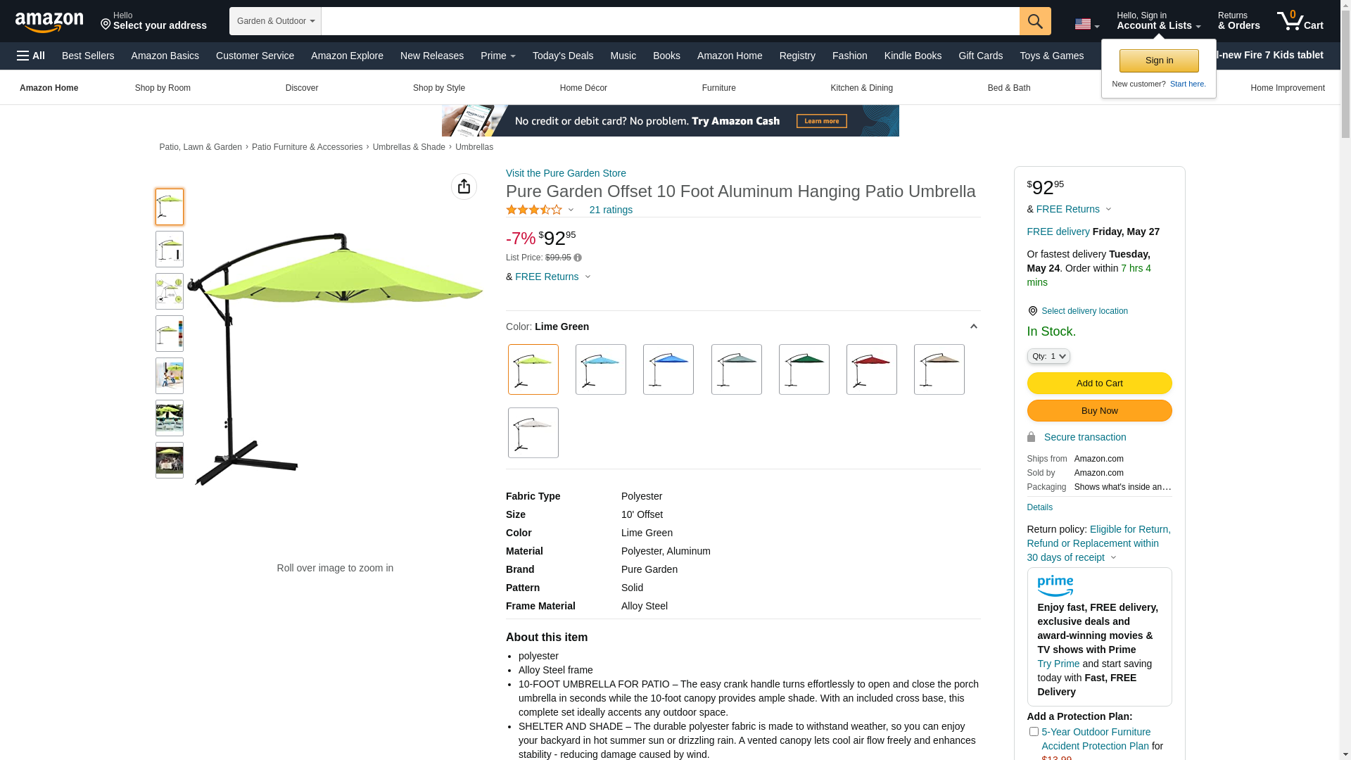 | Feature | 10 foot offset hanging patio umbrella, color: lime Green |