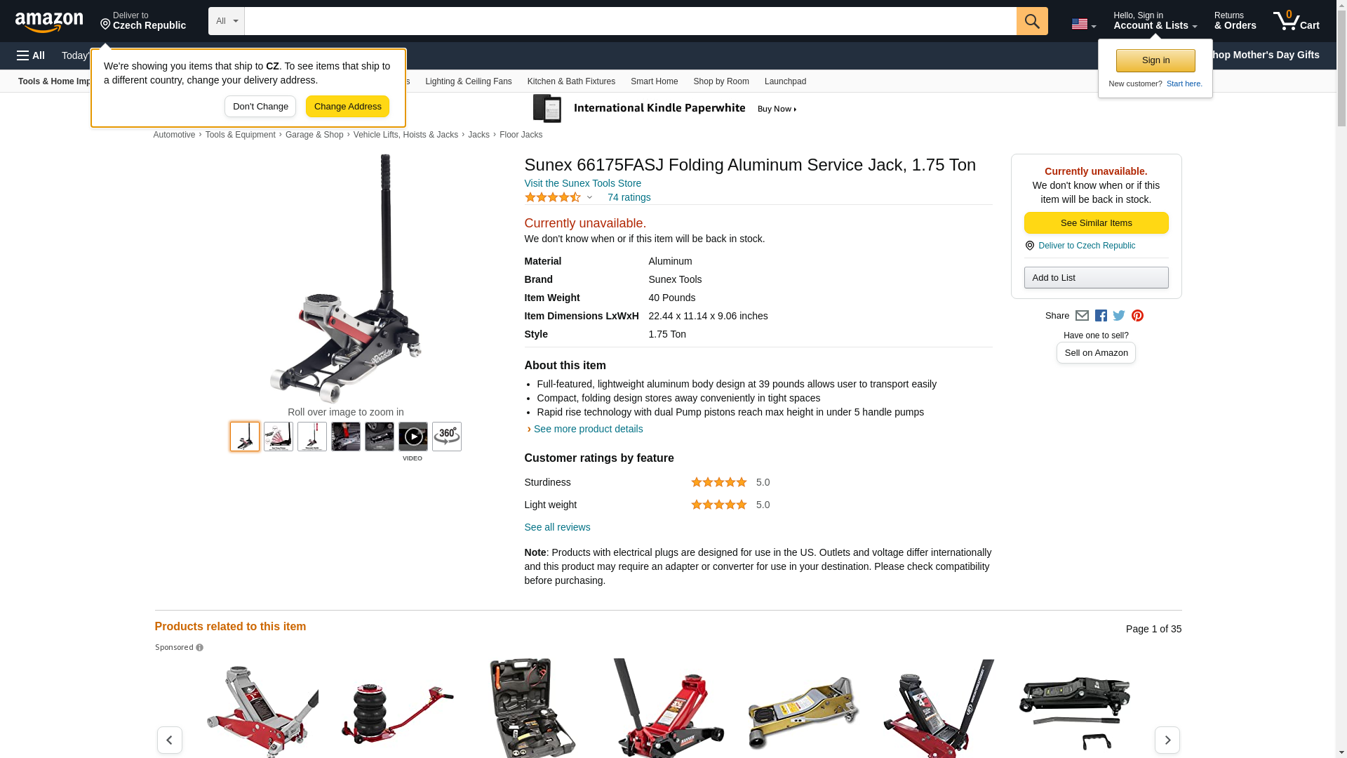 Sunex 66175FASJ Folding Aluminum Service Jack, 1.75 Ton