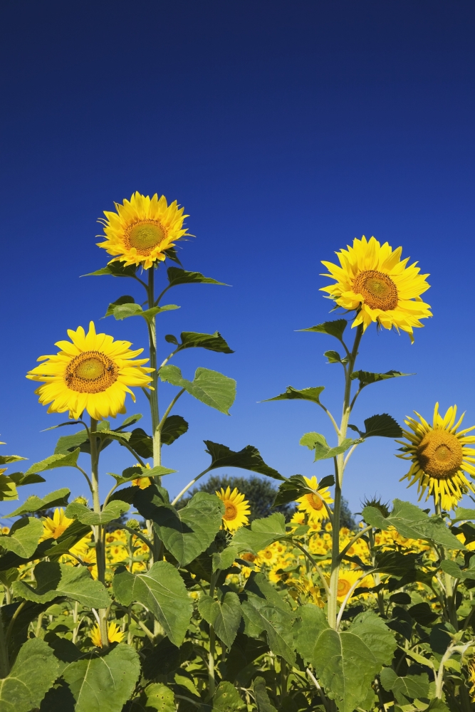 Posterazzi DPI1871558 Laval Quebec Canada - Sunflowers Helianthus Annuus Against A Blue Sky Poster Print, 12 x 18