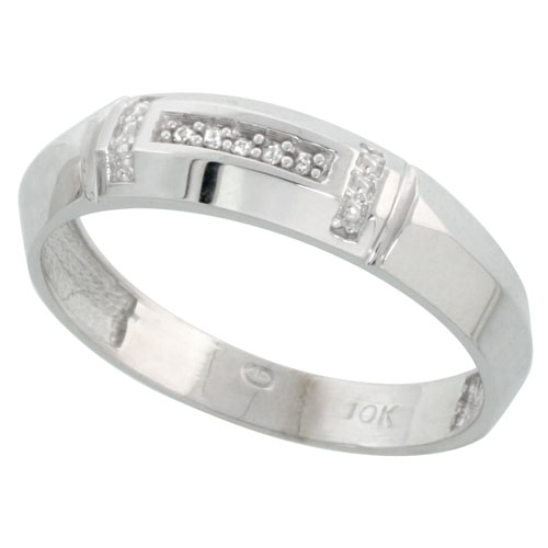 World Jewels 10k White Gold Mens .03 Kt. Brilliant Cut Diamond Wedding Band Ring, Size 12.5