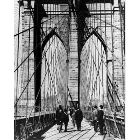 Posterazzi Group of people walking on a suspension Brooklyn Bridge City New York USA c. 1883 Poster Print, (18 x 24)