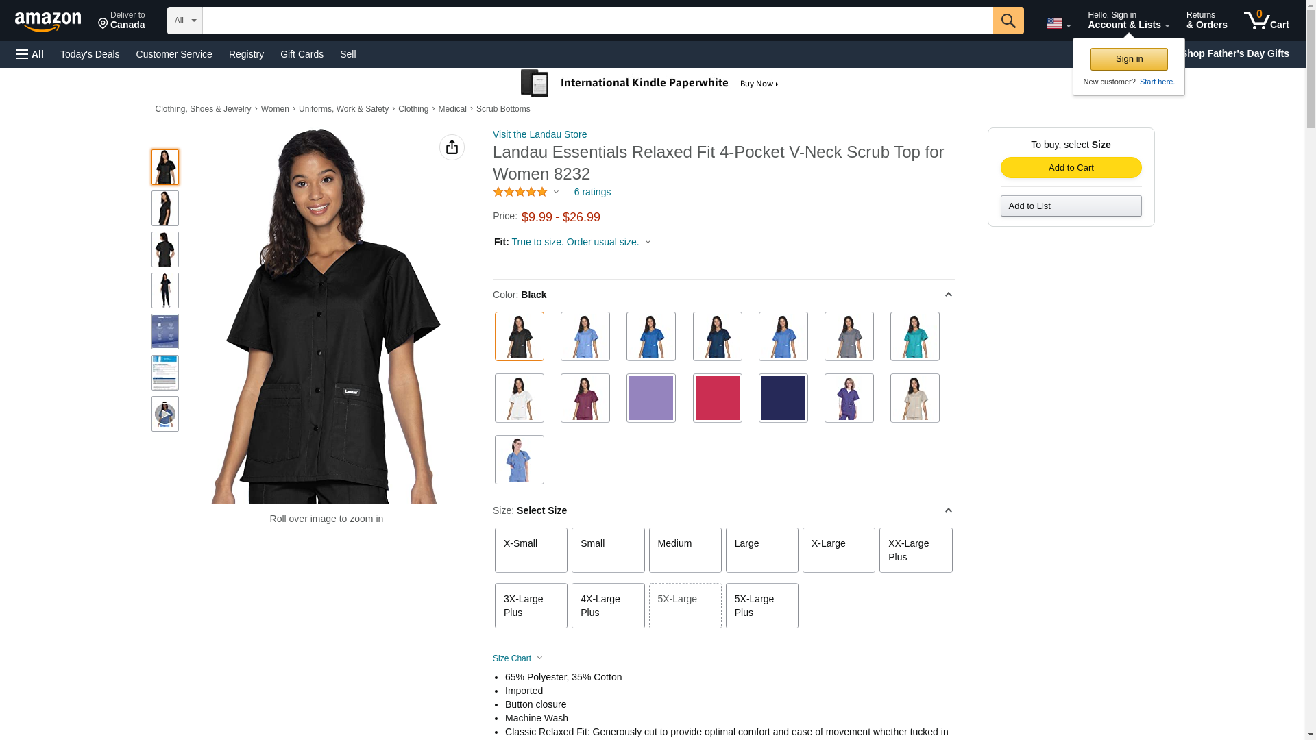 Landau 8232-CBP-4XL - TOP, SCRUB, SNP FNT, 4PKT BTM, LAND, CARIBLU, EACH - CIA Medical