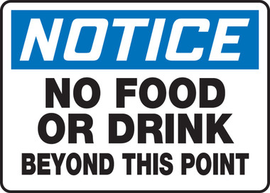 No Food Or Drink Beyond This Point 7X10 .055 Polyethylene Sign