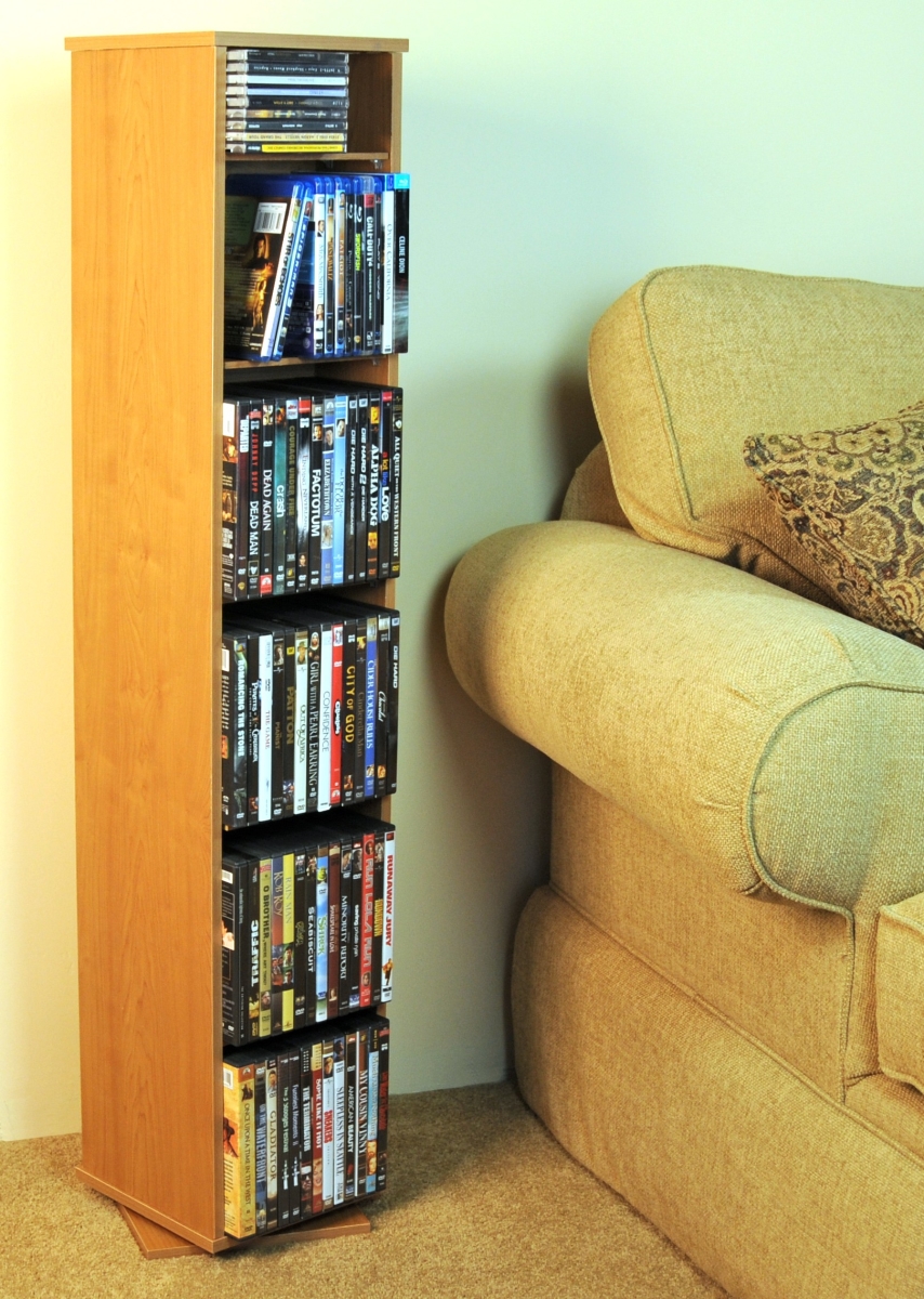 These 2 sided beauties will brighten up any room. Because they rotate a full 360° you will never have to strain your neck locating your favorite CD, DVD, Blu-ray, Video or Cassette. There are nine models from which to choose so identifying the perfect match should be easy. Nearly all the shelves are adjustable so even odd sized media like Disney Tapes can be accommodated. Constructed from durable, stain resistant, laminated wood composites, that includes *MDF. These towers are stain resistant and easy to clean. *MDF, is a man-made fiberboard consisting of wood fibers and resin binders. It is known for its strength and stability. It is uniform in consistency and is knot free. It is structurally more stable than medium weight hardwood and it will not crack. Finishes adhere well to it, which results in a smooth end coat.