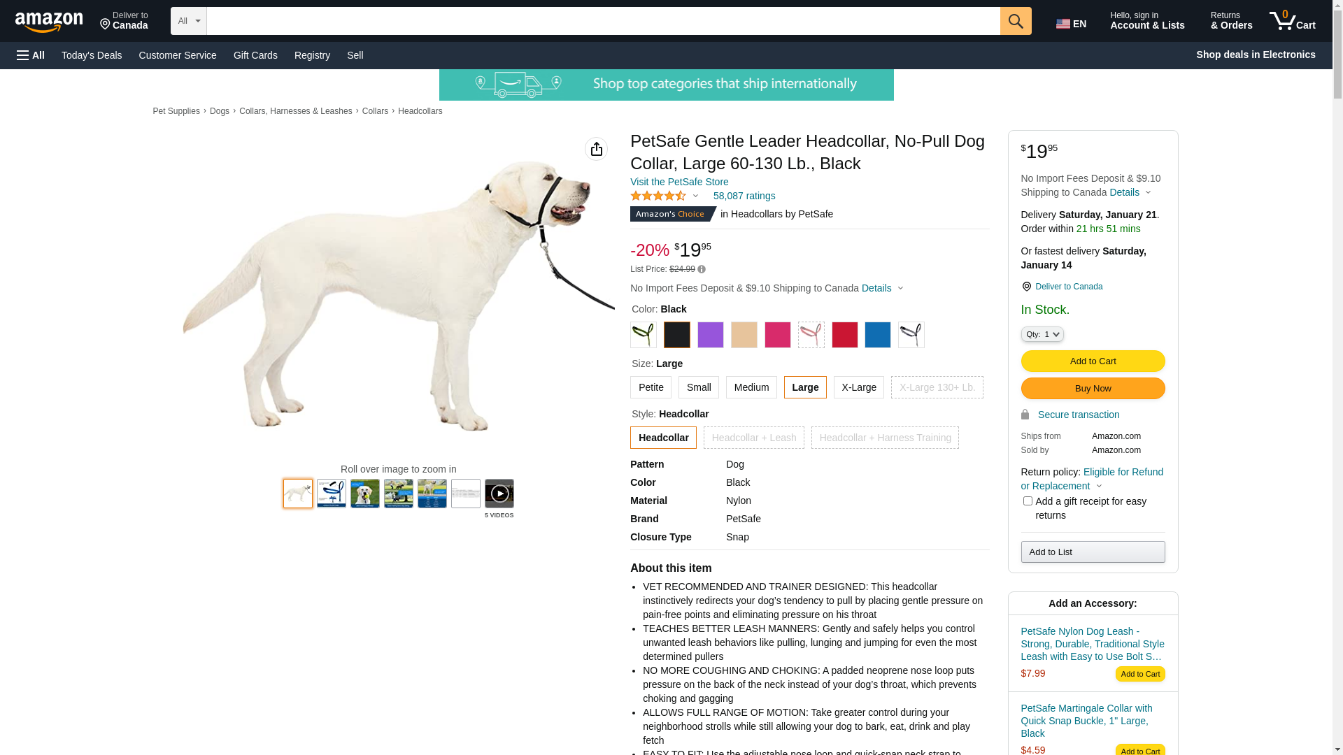 More than two million dog owners have found the secret to stress-free walks. Immediately eliminates pulling on the leash. With the Gentle Leader, when you steer the dog's nose, you steer the dog's body. It's virtually impossible for a dog to drag you down the street when its head is turned to face you. Because it is scientifically designed to work with your dog's natural instincts to control unwanted behavior, results occur in minutes - not weeks. Large fits dogs 60 - 130lbs.