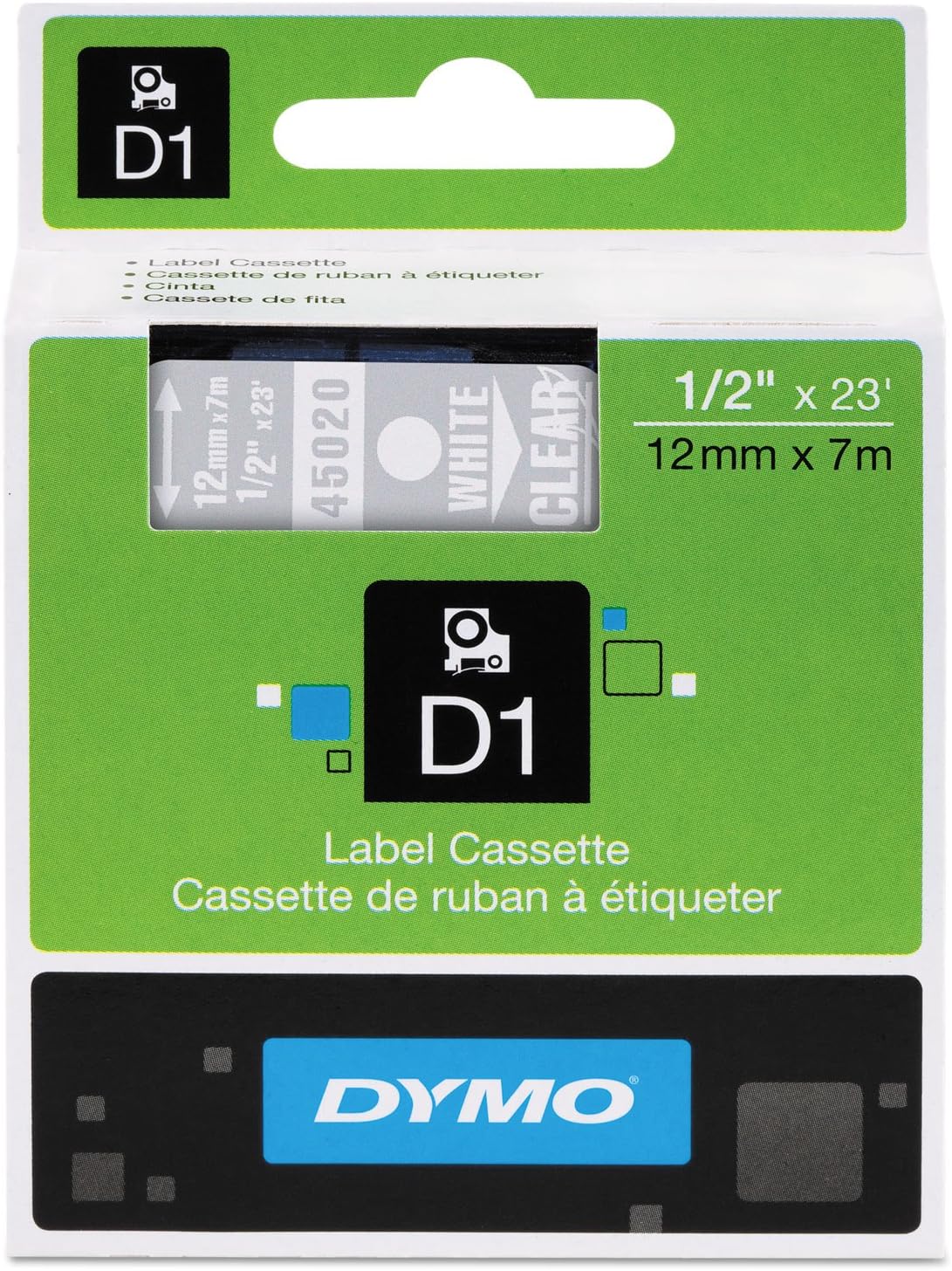 DYMO Self-Adhesive Label Tape makes it easy to make high-quality, durable labels that stay put. This label tape features a super strong adhesive, making it an ideal choice for school supplies, office files, and more. They are available in a variety of sizes and colors. Perfect for many tasks around the home or office, can be removed without leaving adhesive residue. Label Size - text: 1/2" x 23 ft.; Label Color(s): Clear; Machine Compatibility: DYMO LabelManager; DYMO LabelPointTM; DYMO LabelWriter Duo; DYMO Rhino; Older DYMO Label Printers That Use D1 Tapes.