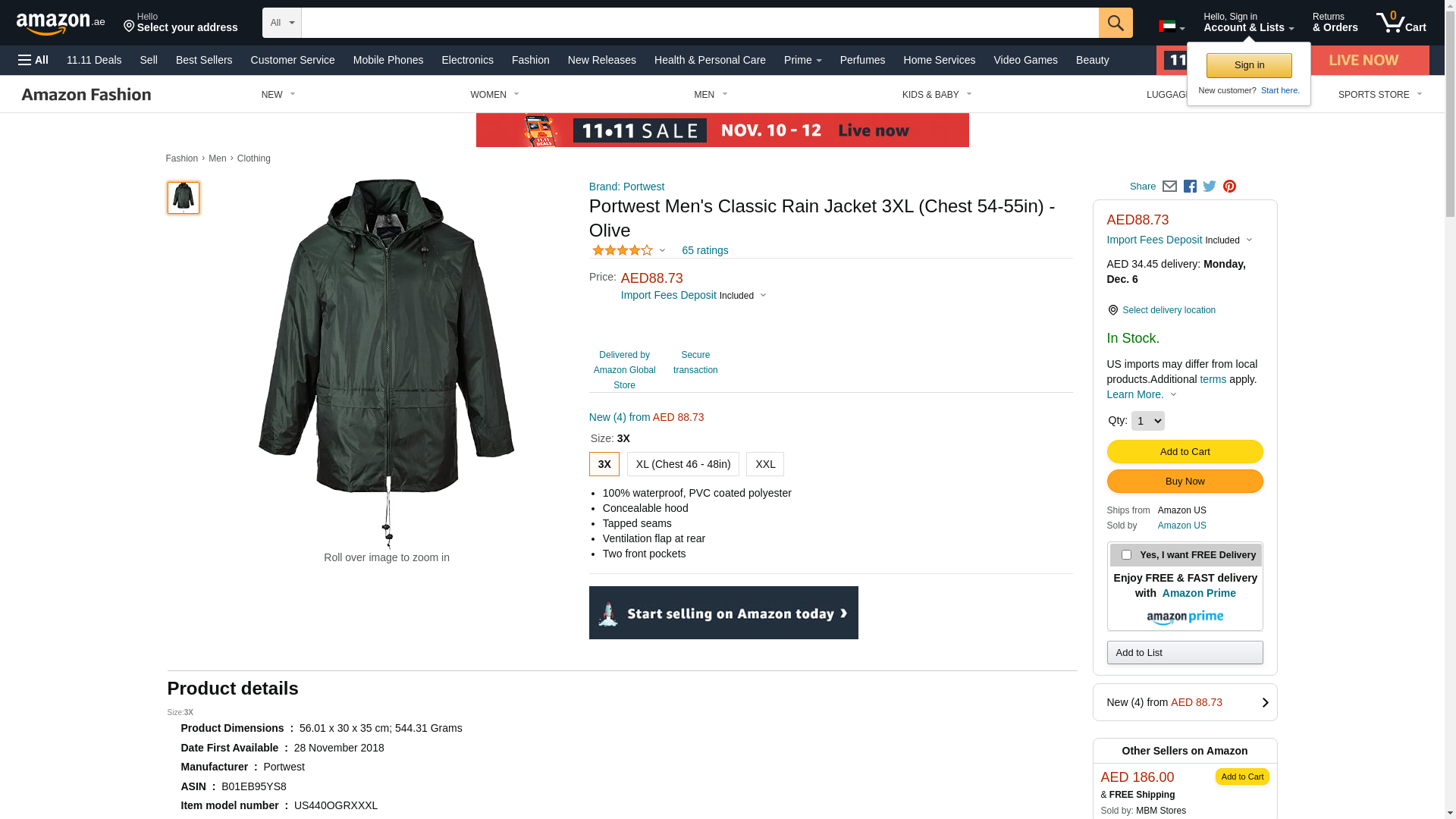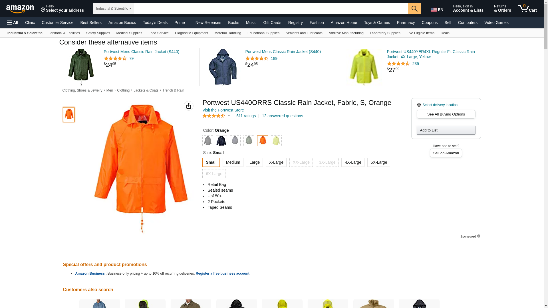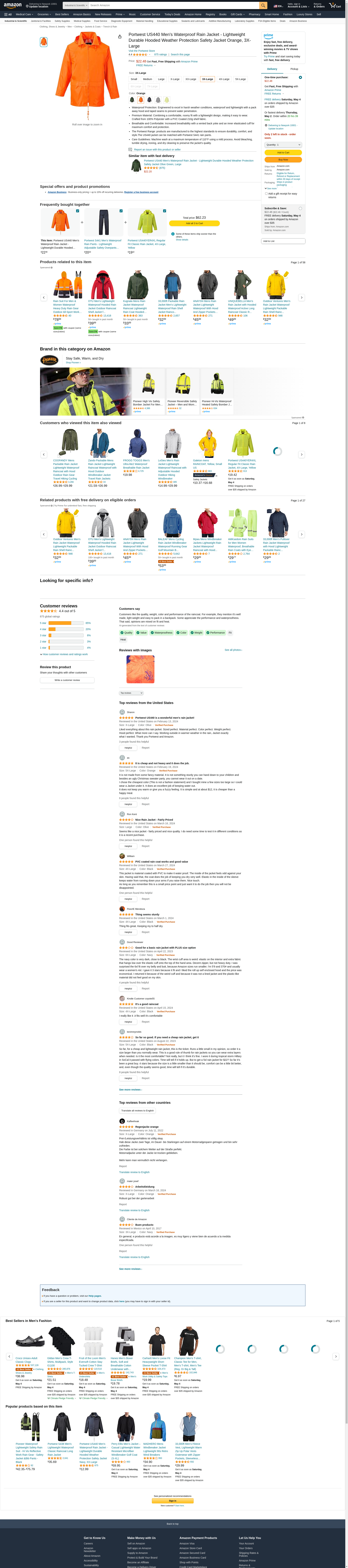 Order US440ORRXXXL by Portwest Classic Rain Jacket, Reg Fit, Orange, XXXL - US Mega Store