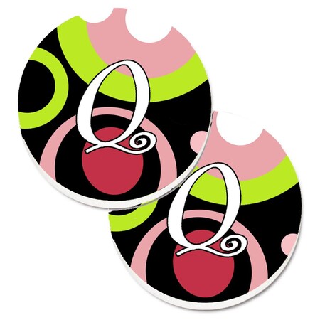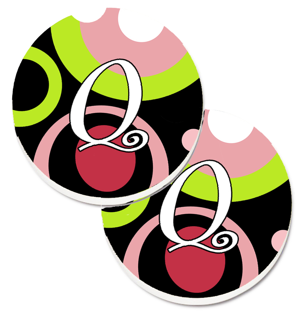 Caroline's Treasures AM1002-QCARC Letter Q Monogram - Retro in Black Set of 2 Cup Holder Car Coasters Absorbent Sandstone Coasters for Car Cup Holders Gifts for Men or Women, Large, Multicolor