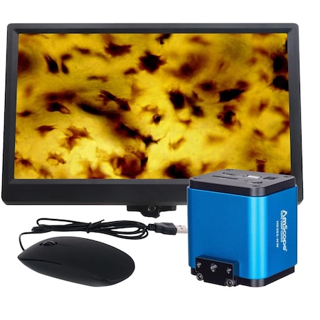 AmScope - 1080p 60fps 2MP HDMI + Wi-Fi High-Sensitivity Color CMOS C-Mount Microscope Camera w/Monitor Stand-Alone and PC Imaging - HD202-S11B