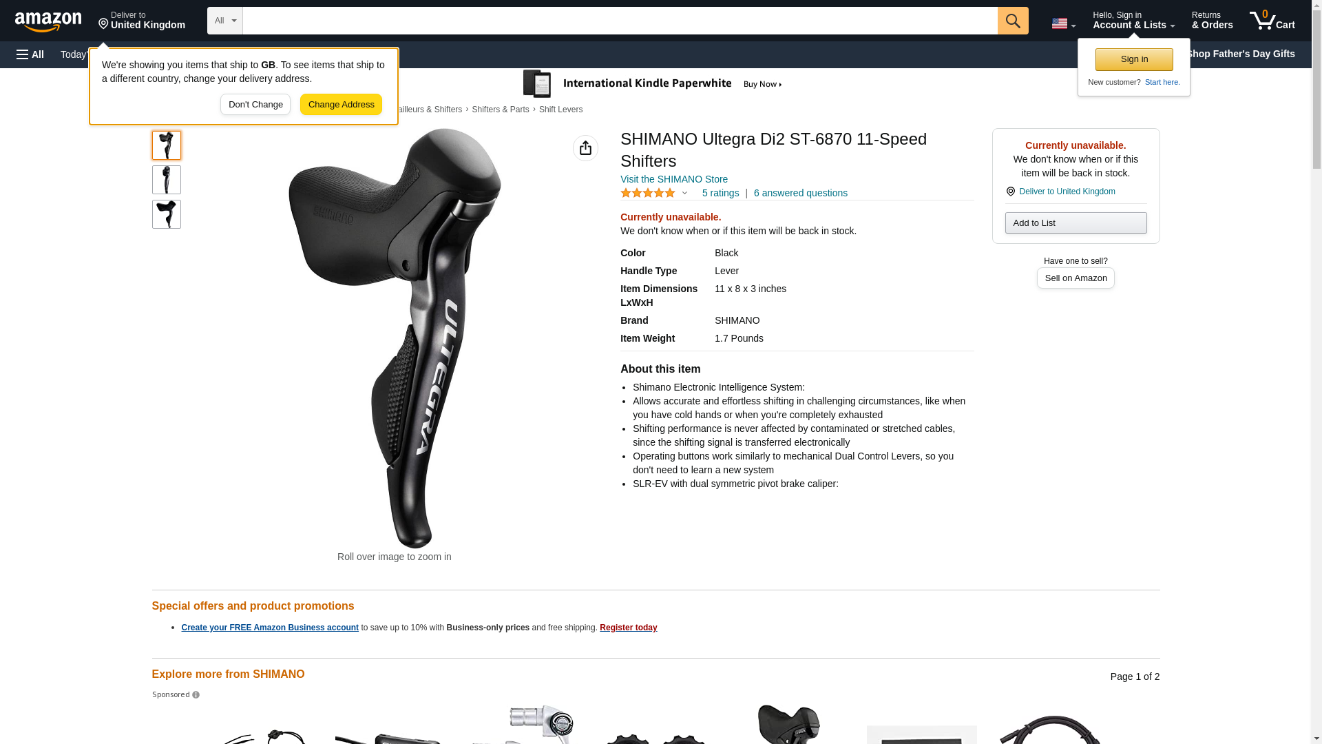 SHIMANO Ultegra Di2 ST-6870 Road Bike Shifters 11 Speed