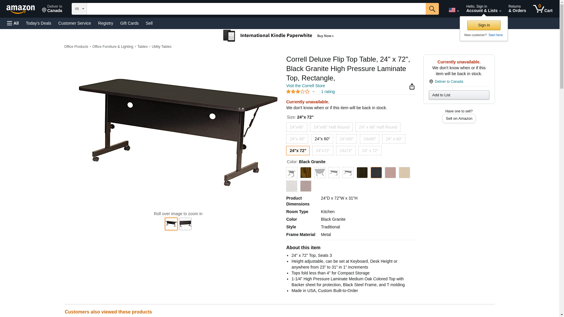 Correll Deluxe Flip Top Table, 24" x 72", Black Granite High Pressure Laminate Top, Rectangle,