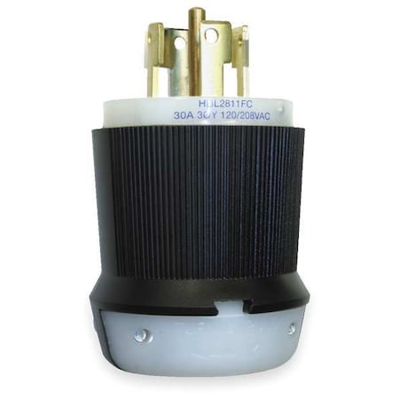 Hubbell - HBL2811FC - 30A Industrial Grade Non-Shrouded Locking Plug, Black/White; NEMA Configuration: L21-30P