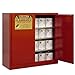 SECURALL Paints and Inks Safety Cabinets keep 1-gallon paint and ink cans safe and organized. 18-gauge all-welded cabinets have double wall construction with 1-1/2" air space. 3-point self-latching doors have flush-mount locking handle and warning label that reads "FlammableKeep Fire Away". Galvanized steel shelves and adjustable leveling legs. Other features include: 2" deep bottom leak-proof sill, (2) 2" vents with flash arrestors, static ground connections, and continuous piano hinge. Urethane paint finish. FM-approved. Meets OSHA and NFPA Code 30 standards. NOTE: Capacities may vary based on container size and shape.