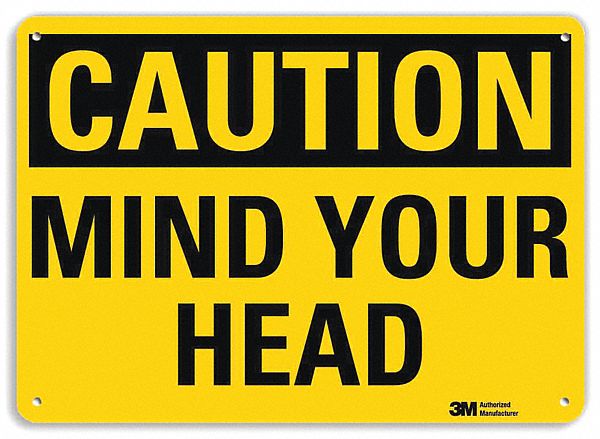 Caution Sign, Horizontal Rectangle, Number of Printed Sides 1, English, Sign Format Traditional OSHA, Sign Legend Mind Your Head, Sign Legend Background Color Yellow, Sign Legend Style Text