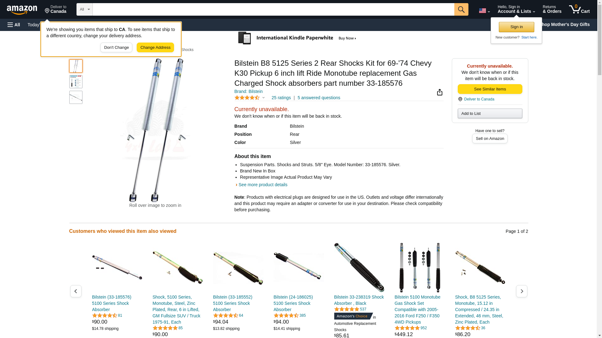 ![]() automotivestuff.com | BILSTEIN-33-185576 | 1 | -2 | 1 | 1 @ $111.60 |