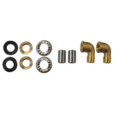 Splash Mount Faucet Mounting Kit, (2)-1/2" Supply Nipples, (2) Retainer Nuts, (2) Lock Washers, (2) Rubber Washers & (2) Male & Female Short 90? Elbows, New Design, Easy Installation