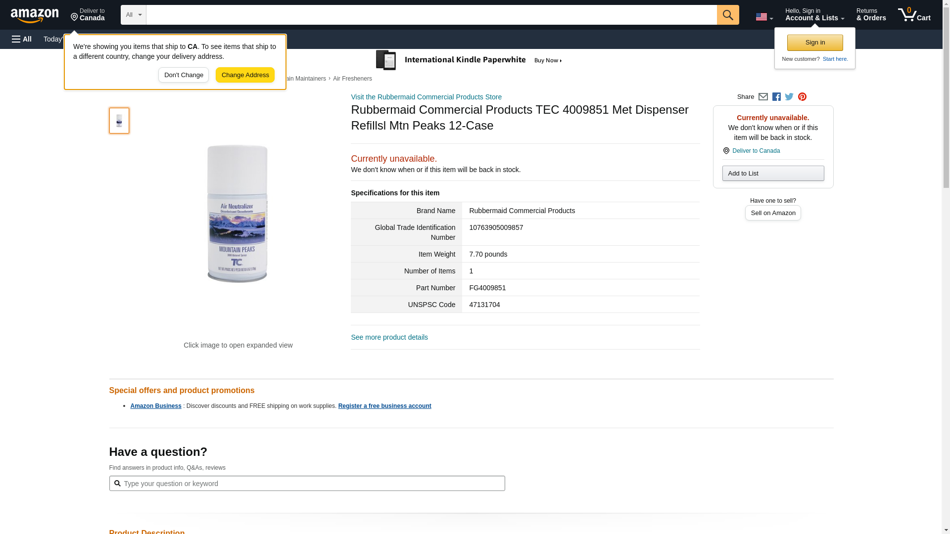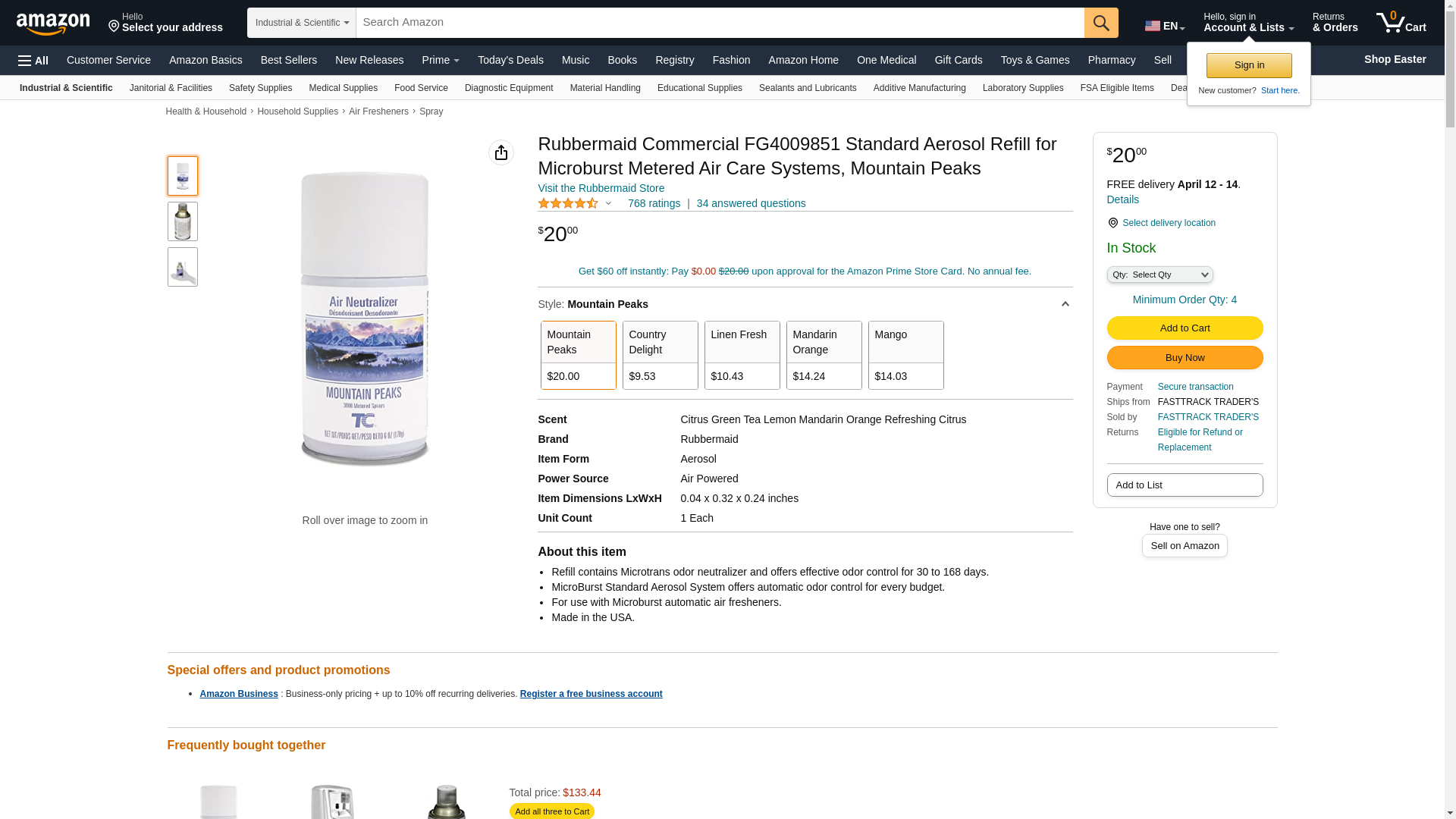 Rubbermaid Commercial FG4009851 Standard Aerosol Refill for Microburst Metered Air Care Systems, Mountain Peaks