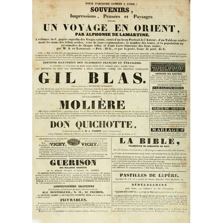 Stretched Canvas Art - French Newspaper Page Journal Sans Abonn_s 1832 - Medium 18 x 24 inch Wall Art Decor Size.
