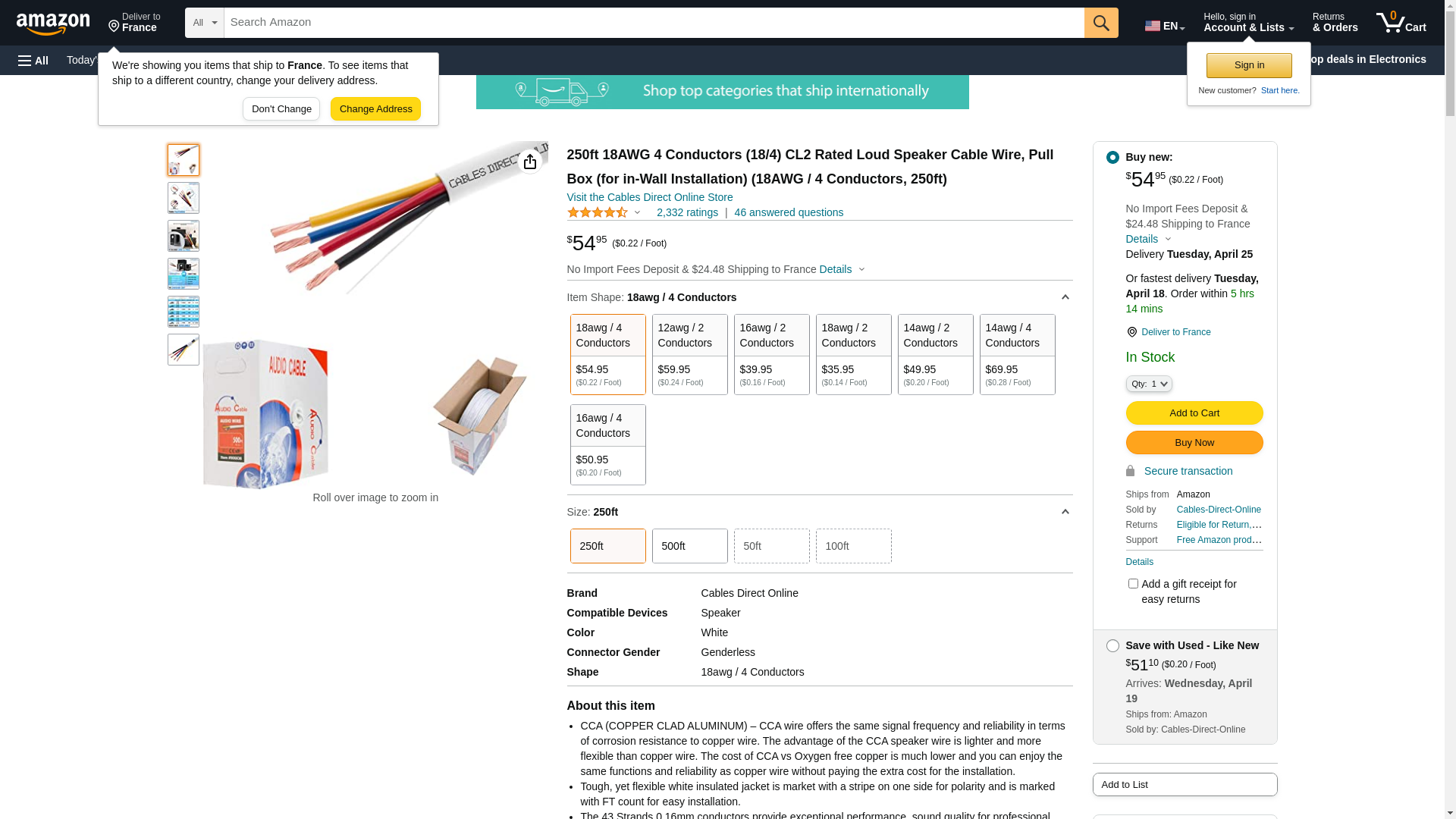 250ft 18AWG 4 Conductors (18/4) CL2 Rated Loud Speaker Cable Wire, Pull Box (for in-Wall Installation) (18AWG / 4 Conductors, 250ft): Maxedbuy.com