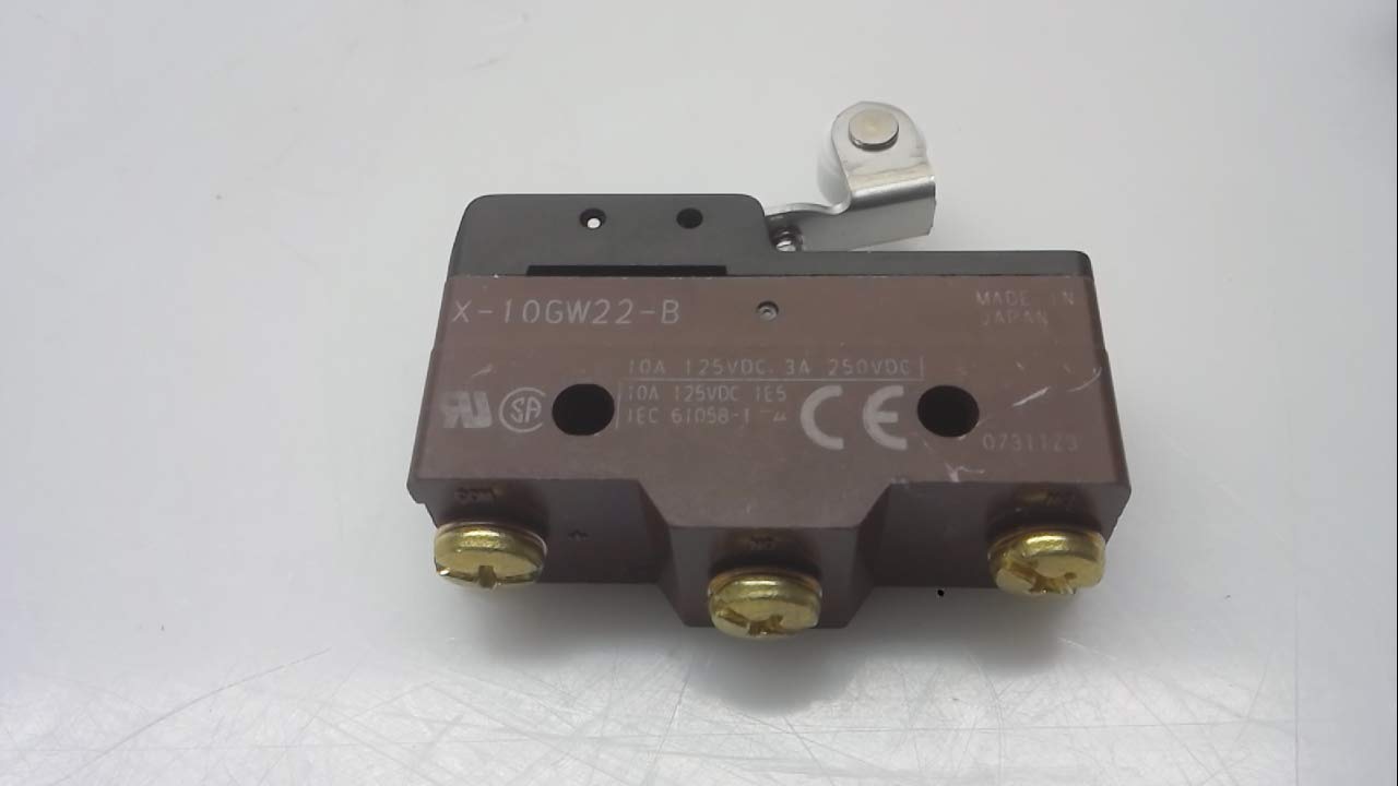 Omron X-10GW22-B General Purpose Basic Switch, Built In Magnetic Blowout, Screw Terminal, Short Hinge Roller Lever, 0.9mm Contact Gap, 10A at 125VDC Rated Current