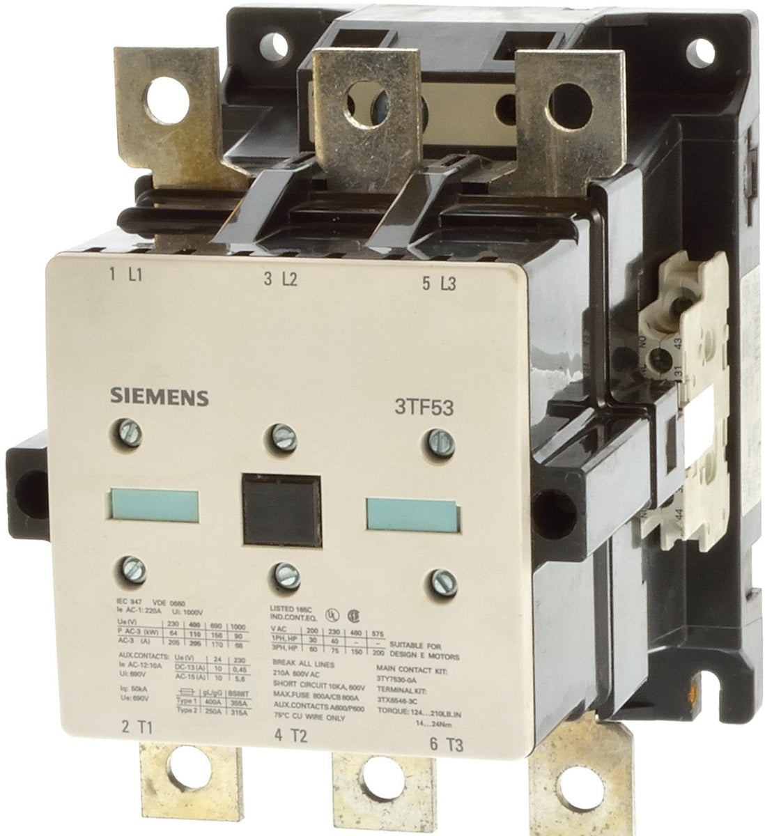 As an Amazon Associate, we earn from qualifying purchases. 3TF5344-1D – SIEMENS – Control Parts SIEMENS . 3TF5344-1D Gallery Attributes Brand name, Manufacturer name, ManufacturerSIEMENS Extra Product Name3TF5344-1D – SIEMENS – Control Parts moq, multiple, tierMinQty11 MPN, SKU3TF5344-1D qtyInStock-2 qtySourceFieldMap snippetSiemens - 3TF5344-1D motor starters - Siemens contactorsThe Siemens 3TF5344-1D is a 3-phase IEC rated contactor used for the control of electric motors. It is rated 75 HP at 230V and 150 HP at 460V. Itcomes with 2NO and 2NCauxiliary contact. Conforms to IEC 60946Price List DC Operating Coil Voltage: Options listed belo tierPrice11998.0 Distributor offers SellerSKUMOQIn stockMultiplePrices controlparts.com3TF5344-1D1-211 @ $1998.00